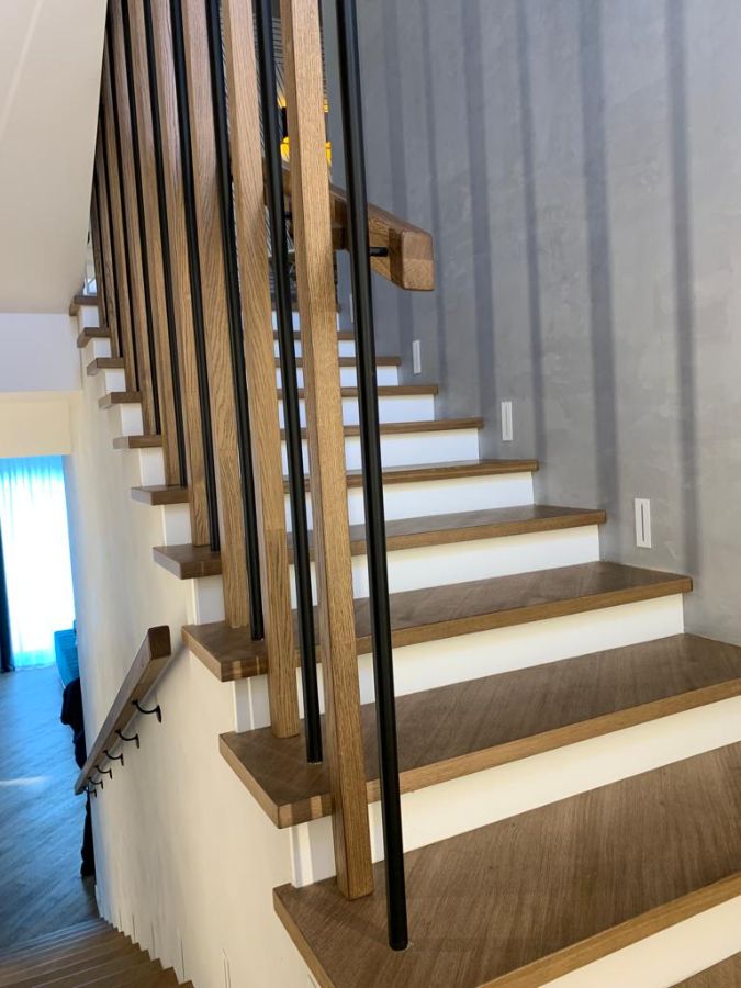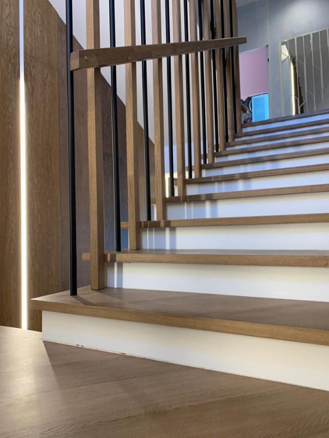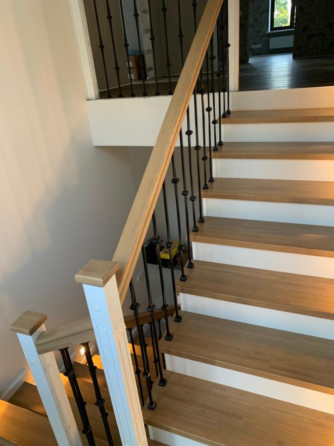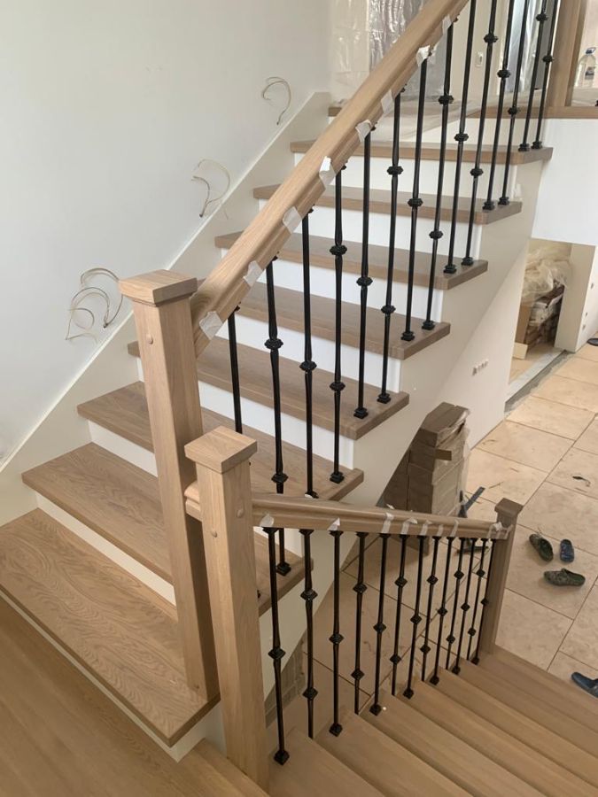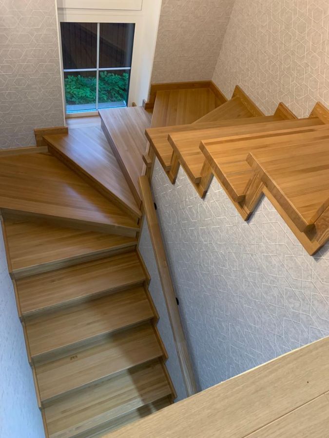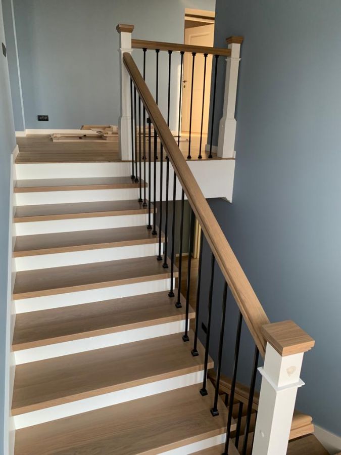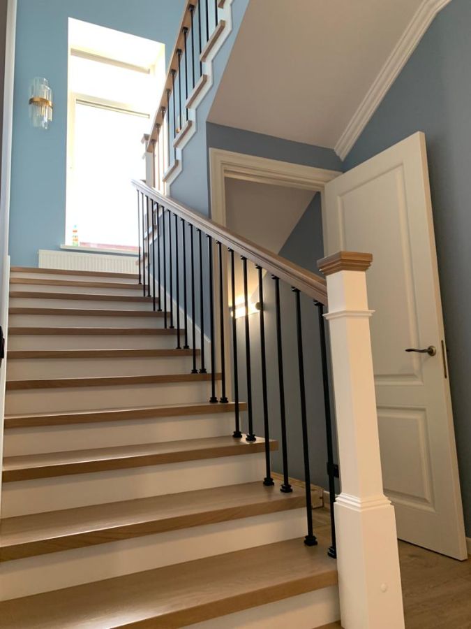 Изготавливаем под ваши размеры из массива дуба, бука и ясеня. Совмещаем с вашим стилем лестницы.